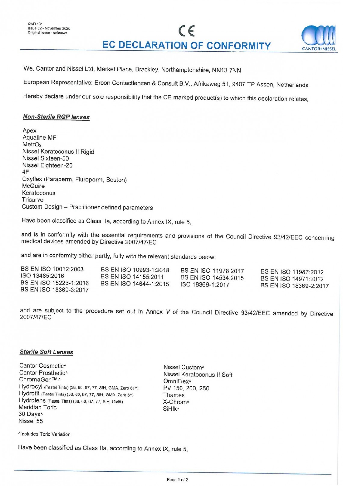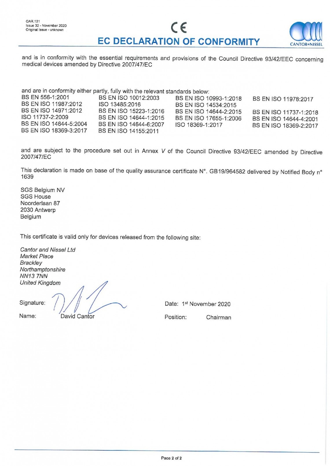 Cantor+Nissel EC atbilstības deklarācija